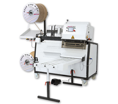 User friendly, flexible, semi-automatic RENZ RING WIRE® binding machine for books, calendars and skip binding.